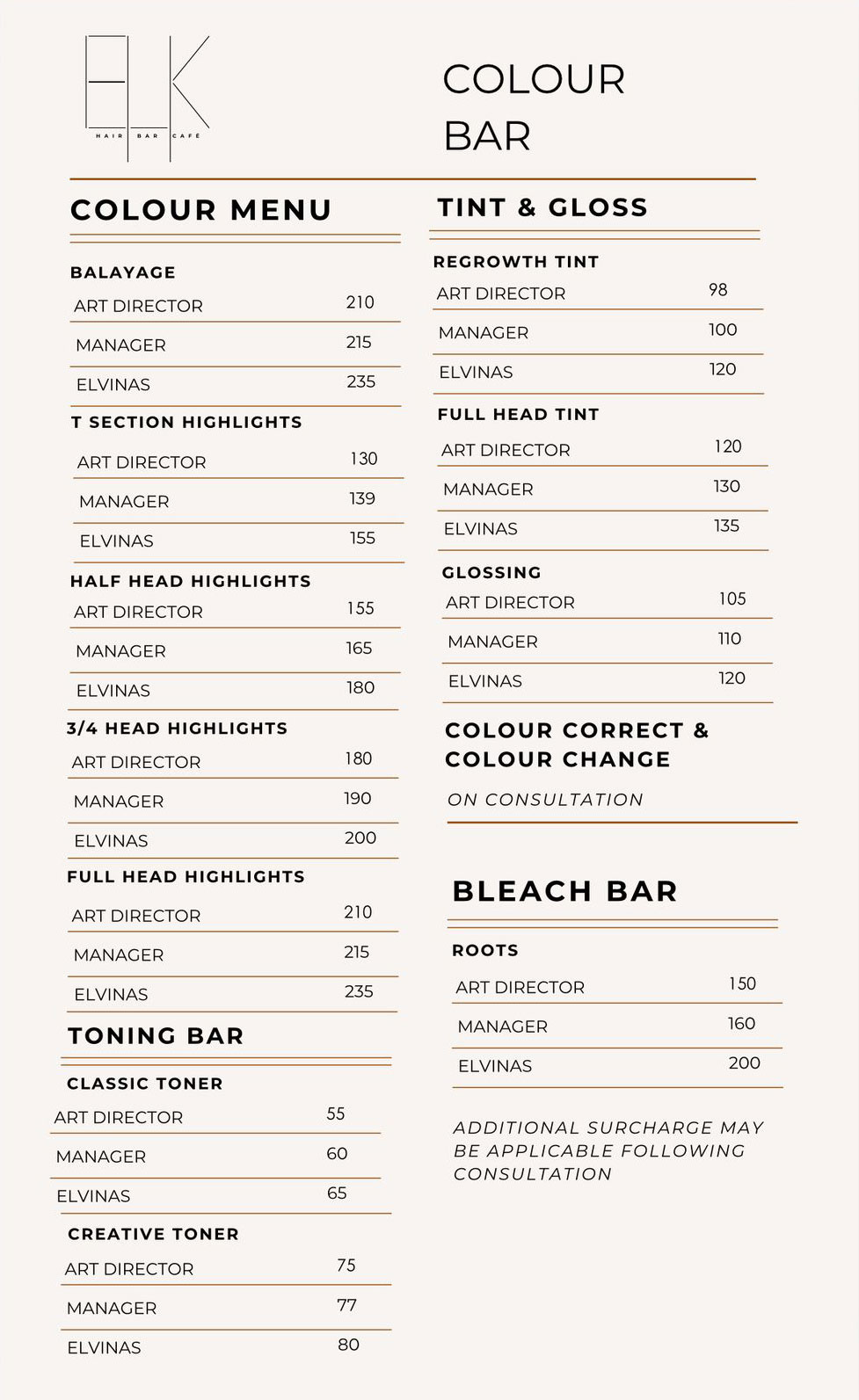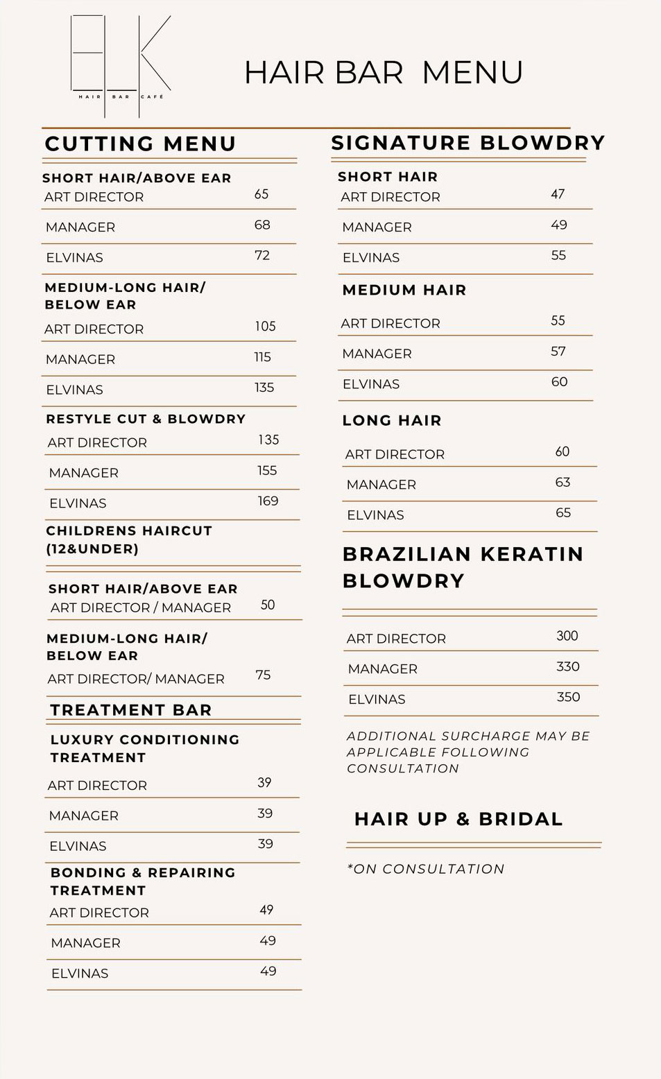 Should you not be able to make your appointment and need to reschedule please notify the salon 24 hours prior by phone. If cancellation is received after this notice period 100% fee will apply.
